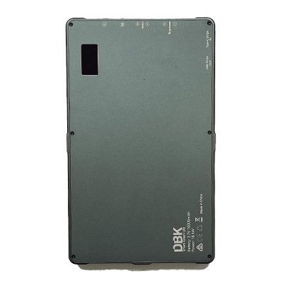 نور ال ای دی دی بی کی DBK RGB BGD014 با قدرت 18.5 وات ، با امکان تغییر کلوین از 3200 تا 5600 ، با امکان تغییر رنگ با کنترل رنگ 0 تا 360 ، با قابلیت تنظیم میزان روشنایی 1 تا 100 درصد ، دارای CRI>96 ، دارای ظرفیت باتری 10000 میلی آمپری ، دارای پورت ورودی USB-C (جهت شارژ کردن ) ، پورت خروجی USB جهت استفاده به عنوان پاور بانک ، با وزن 508 گرم، دارای صفحه نمایش جهت مشاهده تنظیمات ، به همراه کابل شارژ و مانت جهت استفاده به روی دوربین