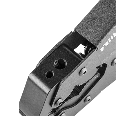 همچنين بروي هر فك دو رزوه 1/4” و 3/8” قرار دارد كه امكان نصب هر ديوايسي مانند رود، مجيك آرم، نور فلاش، ال اي دي، ميكروفون و موبايل را فراهم میکند.