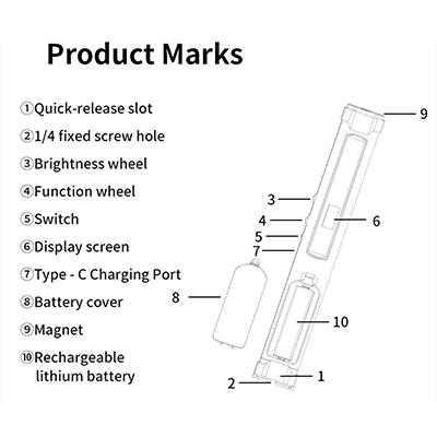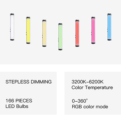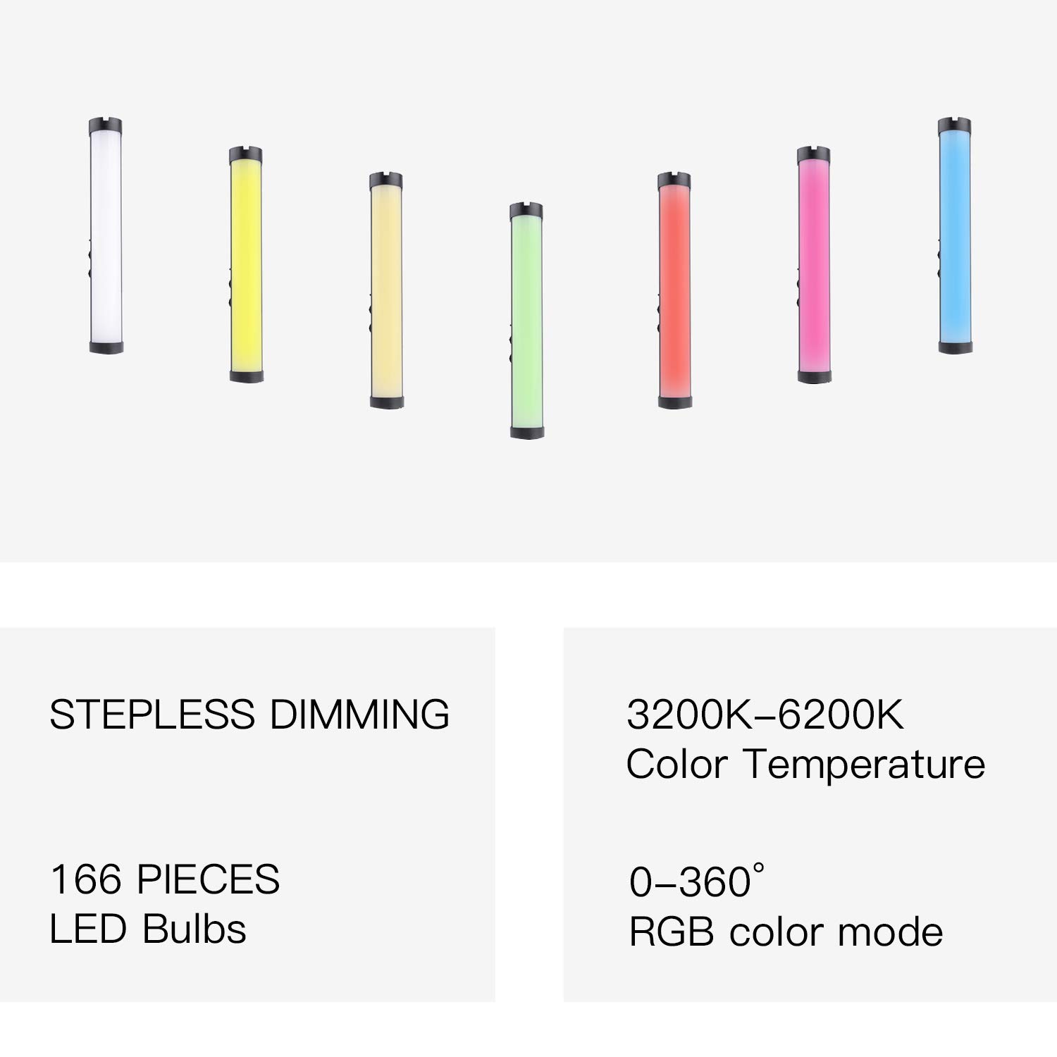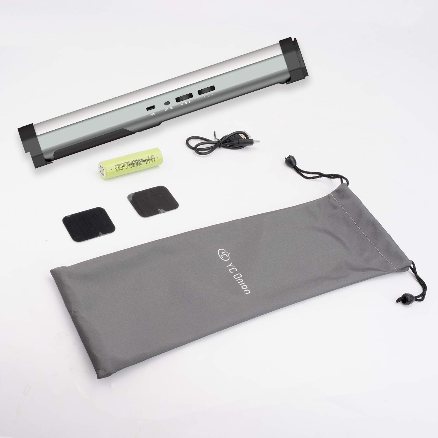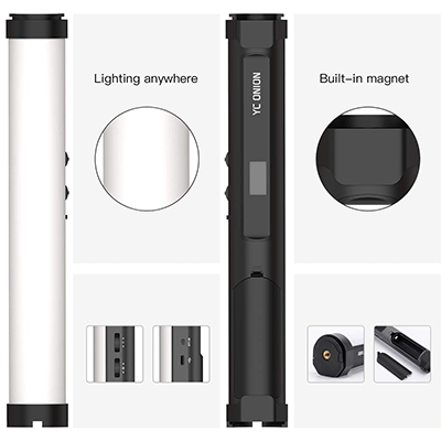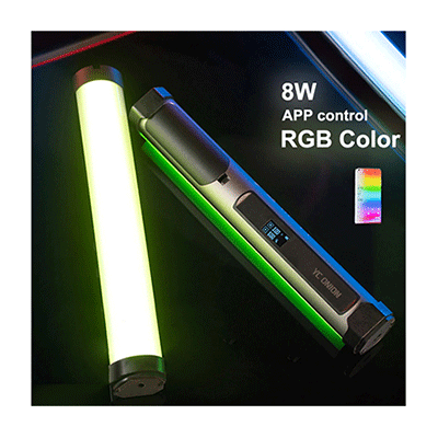 نور باتومی YC Onion Energy Tube RGB با اندازه 27 سانتی متر ، دارای 166 ال ای دی ، با قدرت 8 وات ، با قابلیت تغییر کلوین از 3200 تا 6500 ، دارای CRI>98 ، با حالت RGB ، با قابلیت تنظیم میزان روشنایی از 0 تا 100 درصد، دارای باتری لیتیومی با ظرفیت 45 تا 60 دقیقه ، با مدت زمان شارژ 1.5 تا 2 ساعت ، دارای حالت افکت ، دارای اپلیکشن مخصوص برای موبایل ، دارای خاصیت آهن ربایی