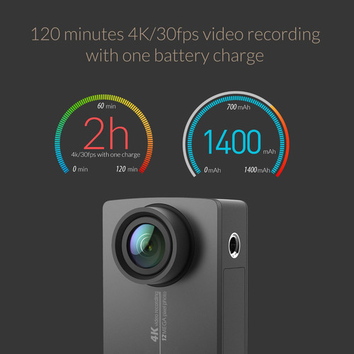 دوربین اکشن YI 4K که عملکردی حرفه ای را در بدنه ای جمع و جور و ساده قرار می دهد، باعث می شود تصویربرداری از همه ی ماجراجویی های شما با وضوح تصویر UHD 4K بسیار سریع، جالب و ساده انجام شود. این دوربین، سنسور تصویر نسل جدید CMOS سونی و پردازنده ی دو هسته ای Ambarella را ترکیب ی کند تا از فیلم برداری UHD 4K با نرخ 30 فریم بر ثانیه و نرخ بیت بالا 60 مگا بایت بر ثانیه ای پشتیبانی کند. علاوه بر این از کیفیت فیلم 2.5K با نرخ 30 فریم بر ثانیه، کیفیت فیلم p1080 تا 120 فریم بر ثانیه و عکس های 12 مگا پیکسلی به صورت پشت سر هم تا 30 فریم بر ثانیه پشتیبانی می کند. لنز واید دوربین از عدسی تمام شیشه ای استفاده می کند که همزمان با لرزش گیر تصویر داخل دوربین و اصلاح لنز کار می کند تا تصاویری واضح با کاهش اعوجاج fisheye که در بسیاری از دوربین های اکشن وجود دارد، تولید کند.