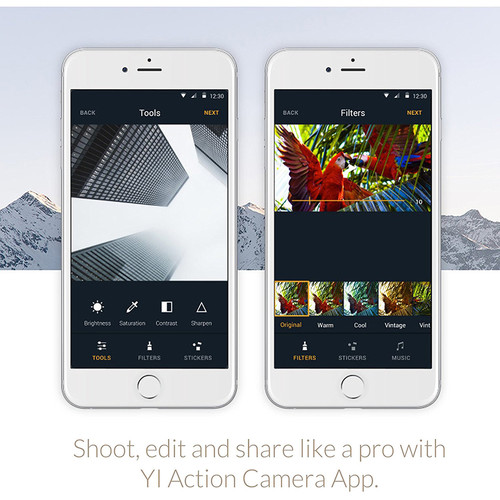 با استفاده از اپلیکیشن YI action Camera به سرعت ادیت های ویدئویی 6 تا 30 ثانیه ای ایجاد کنید و با فیلترهای عکس و ویدئو و اضافه کردن موسیقی آن ها را کامل کنید، سپس آن ها را در سایت های رسانه های اجتماعی و جامعه جهانی YI در کانال YI Discover به اشتراک بگذارید.