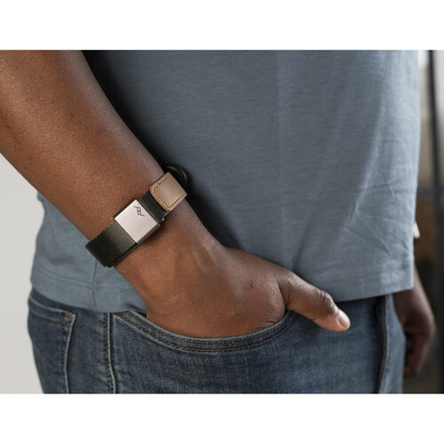 برای نگهداری یا حمل و نقل راحت، بند مچ دست CUFF را می توان از حلقه ی قلاب جدا کرد و به عنوان یک دستبند پوشید و یا در یک کیسه میکروفیبر قرار داد. وقتی آن را به عنوان دستبند می پوشید، می توان طول بند را به دور مچ دست بسته و به طور مغناطیسی در امتداد سطح آن محکم کرد.