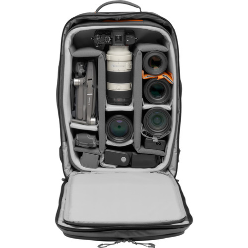 در داخل محفظه ی اصلی یک قسمت تجهیزات قابل جابجایی وجود دارد که یک سیستم تفکیک بندی قابل تنظیم دارد که میتواند دوربین DSLR با لنز 200-70 میلیمتری، هفت لنز اضافی و یک فلاش رودوربینی یا یک دوربین پشتیبان را در خود جای دهد. همچنین، محفظه اصلی را می توان برای دوربین های DSLR یا بدون آینه با لنز 200-70 میلی متری f/2.8، چهار تا پنج لنز اضافی، بهعلاوه یک کیت پهباد تاشو تنظیم کرد.