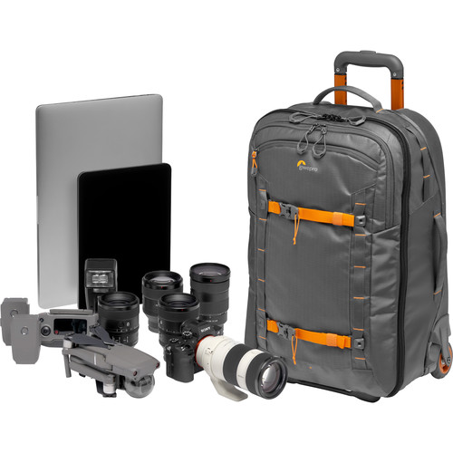 کیف چرخ دار لوپرو Lowepro Whistler RL 400 AW II مناسب برای دو دوربین DSLR به همراه لنز 200-70 میلی متر متصل ، 5 تا 6 لنز اضافی ، فلاش اکسترنال به همراه لب تاپ تا سایز 15 اینچ ، تبلت تا سایز 10 اینچ ، دارای نگه دارنده سه پایه و کاور باران