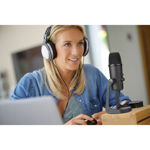 میکروفون دارای کنترل هایی برای میزان صدای هدفون، انتخاب الگو، بی صدا کردن، و gain میکروفون است که شما را مسئول هر سطحی از فرآیند ضبط می کند. اگر هنگام ضبط یک منبع با صدای بلند با اعوجاج یا بازخورد مواجه شدید، به سادگی حساسیت میکروفون را با کنترل gain تنظیم کنید. یا اگر می خواهید در وسط پادکست استراحت کنید، از دکمه ی بی صدا استفاده کنید.