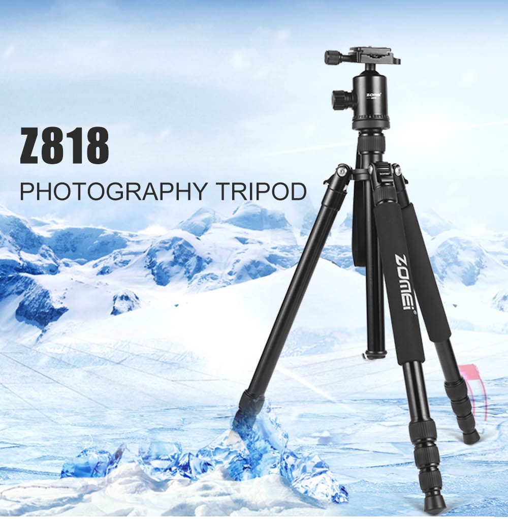 سه پایه عکاسی زومی ZOMEI Z818 با تحمل وزن تا 15 کیلوگرم ، با حداکثر ارتفاع 166 سانتی متر ، با ارتفاع جمع شده 48.2 سانتی ، حداقل ارتفاع 55.8 سانتی متر ، با وزن 2.1 کیلوگرم ، با قابلیت تبدیل به تک پایه، به همراه کاور حمل