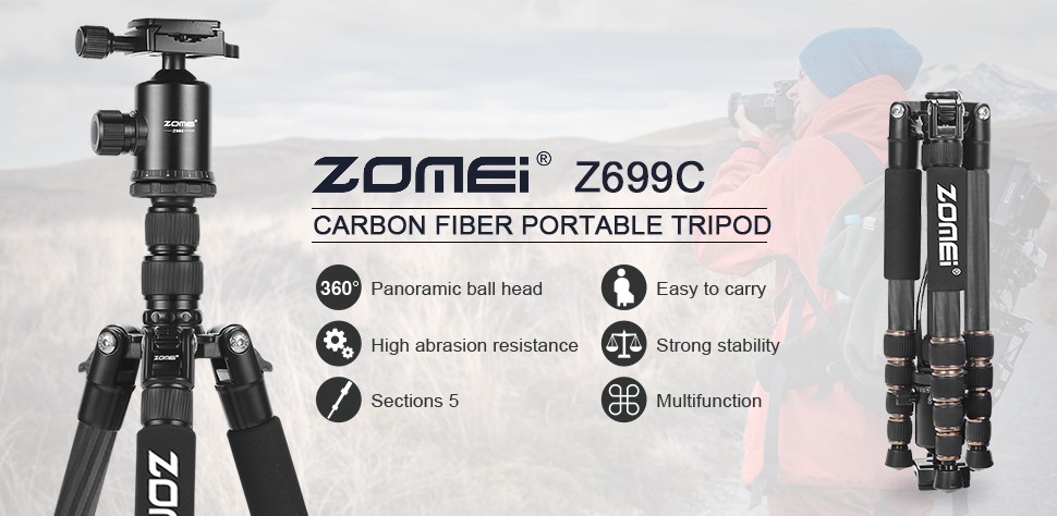 سه پایه ی تاشوی قابل حمل ZOMEi QZ669C برای حرفه ای ها
