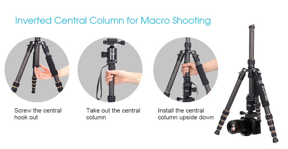 سه پایه عکاسی کربنی زومی ZOMEI Z669C با تحمل وزن تا 13 کیلوگرم(وزن تحملی ایده آل 8 کیلوگرم) ، با حداکثر ارتفاع 152 سانتی متر ، با ارتفاع جمع شده 37 سانتی ، حداقل ارتفاع 53 سانتی متر ، با وزن 1.5 کیلوگرم ، با قابلیت تبدیل به تک پایه ، به همراه کاور حمل
