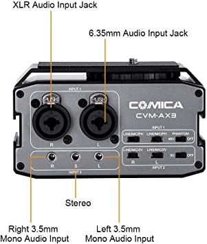 میکسر دو کاناله کامیکا Comica Audio CVM-AX3 برای دوربین های DSLR برای استفاده در تولید ویدیو، موزیک ویدیوها و موارد دیگر