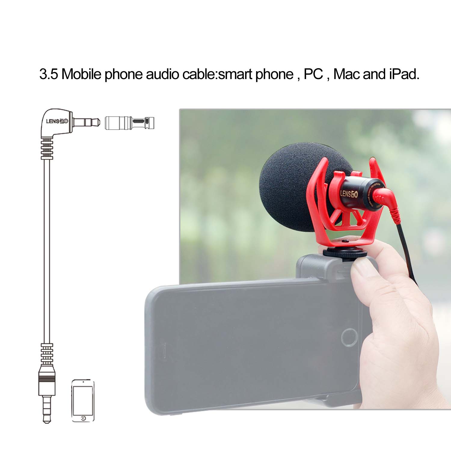 LENSGO LYM-DMM1 یک میکروفون دوربین و گوشی با میکروفون کاردیوییدی کندانسور جهت دار ضد ضربه است که برای بهبود کیفیت صدا در مقایسه با میکروفون های داخلی طراحی شده است. این میکروفون توسط دستگاه شما شارژ می شود، نیازی به باتری ندارد، میکروفون ها را با ضد ضربه ی لاستیکی وصل کنید تا از نویز ارتعاش که بر کیفیت صدا تاثیر می گذارد، جلوگیری کنید. می تواند با رایانه، تلفن هوشمند، دوربین، IOS و غیره کار کند (اگر نیاز به وصل کردن آن به آیفون دارید، لطفاً یک آداپتور آیفون برای استفاده از آن تهیه کنید)