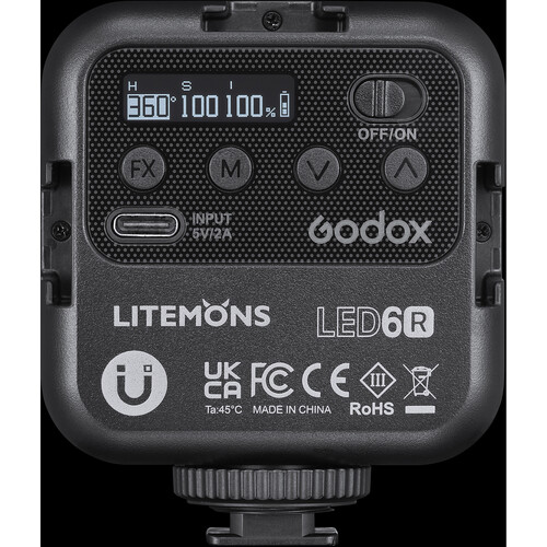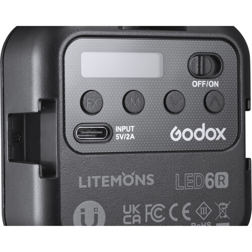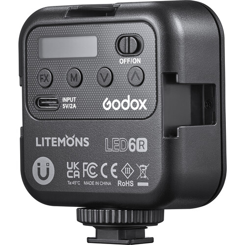 نور ثابت گودکس (Godox Litemons 6R (RGB با قدرت 6 وات با قابلیت RGB ، امکان تغییر کلوین از 3200 تا 5600 ، دارای باتری داخلی 1800 میلی آمپری ، با CRI 95 ، با وزن 110 گرم