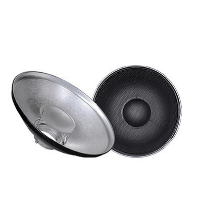 بیوتی دیش داخل نقره ایی با قطر 40 سانتی متر به همراه زنبوری و پارچه دیفیوزر، سافت لایت ها تلفیقی فوق العاده از نور یک دست و کنتراستی مناسب را فراهم می آورند که جزئیات را برجسته می کند. این شکل دهنده، نوری طبیعی به دست می دهد که سایه هایش کمی تشدید شده اند و برای عکاسی پرتره ایده آل است.