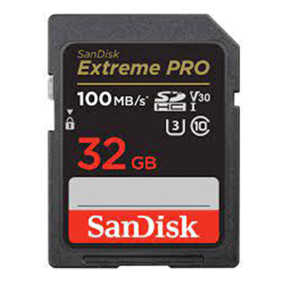 کارت حافظه 32 گیگابایتی Extreme PRO UHS-I SDHC SanDisk که برای دستگاههای SD که میتوانند ویدیوهای Full HD، 3D و 4K و همچنین عکاسی خام و پشت سر هم ضبط کنند، طراحی شده است.