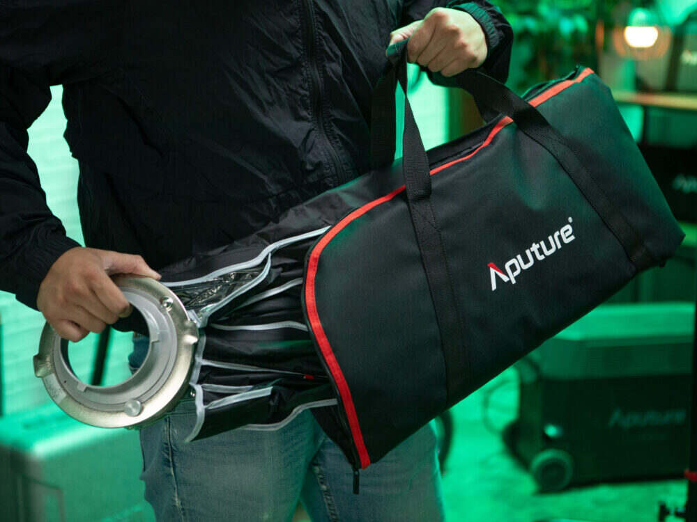 پارابولیک پرتابل 60 سانتی متری(به طور دقیق 58 سانتی متر) اپچر مدل Aputure Light Dome Mini III با امکان باز و بسته شدن بسیار سریع ، قابل استفاده به عنوان سافت باکس و بیوتی دیش ، به همراه دیفیوزر ، پارچه کوچک متصل شونده به مرکز پارابولیک جهت استفاده به عنوان بیوتی دیش ، زنبوری به همراه کیف