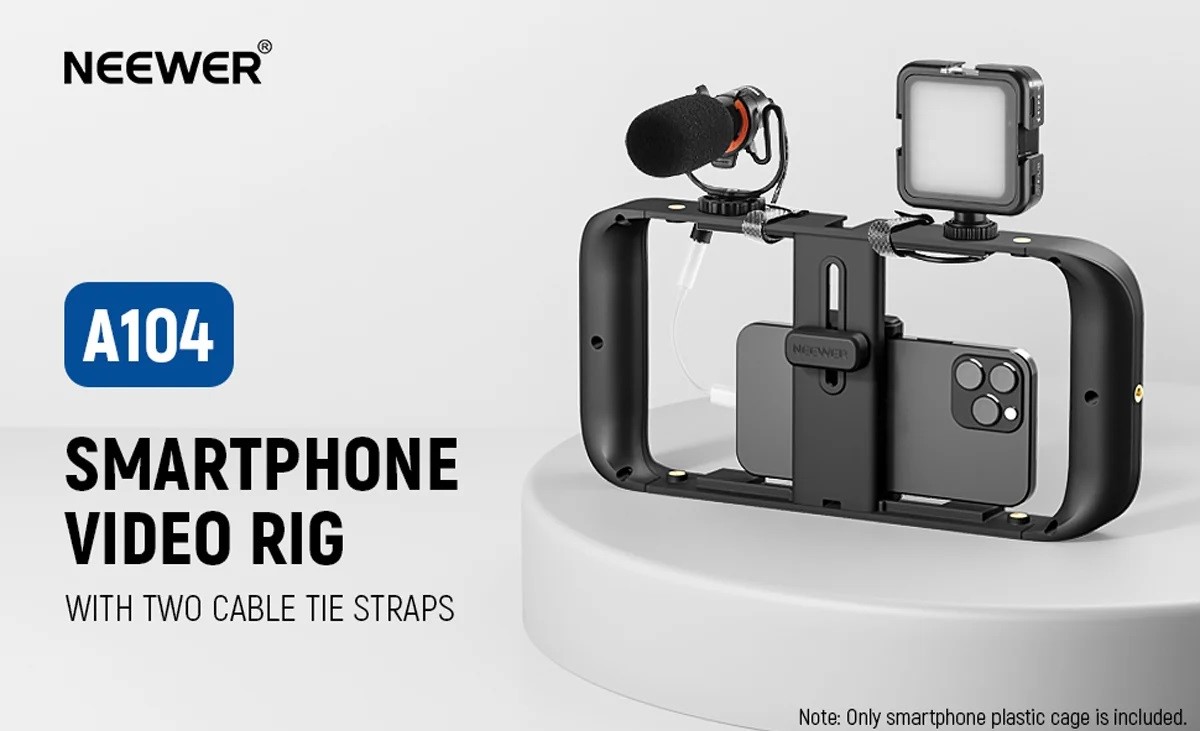ریگ موبایل همهکاره NEEWER A104 یک ابزار حرفهای و در عین حال سبک برای ضبط ویدیو با موبایل است. این نگهدارندهی ویدیویی با طراحی قابل تنظیم، با انواع گوشیهای هوشمند از برندهای مختلف سازگار است،