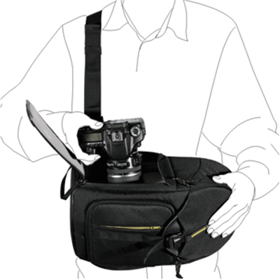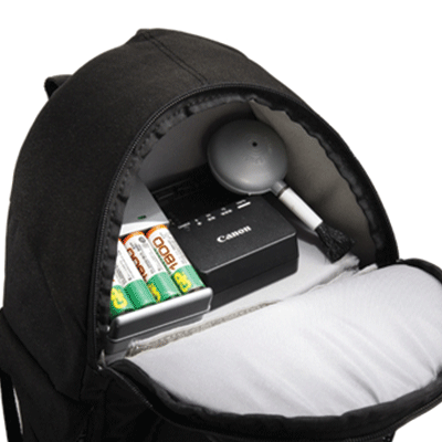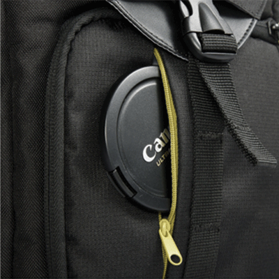 کیف کوله پشتی زیبا و کوچک دارای ظرفیت یک دوربین DSLR با لنز متصل شده، 2-3 لنز اضافی، فلاش و لوازم جانبی (کارت حافظه، کابل، باتری و شارژ)