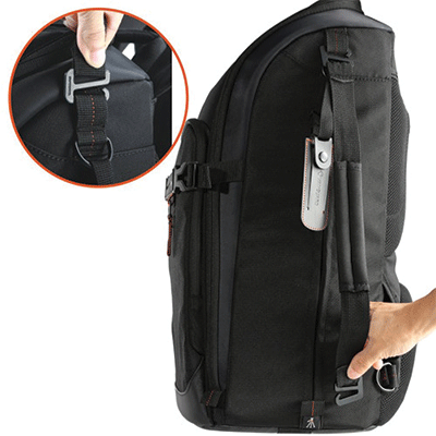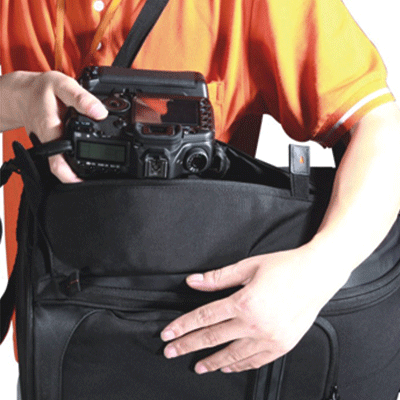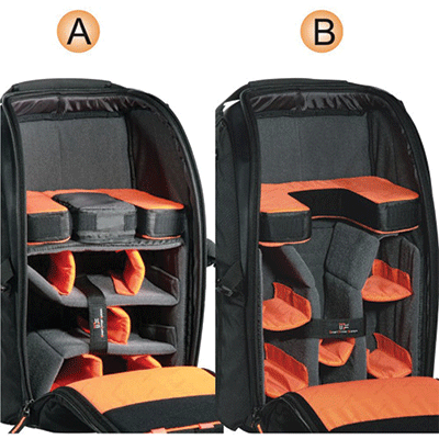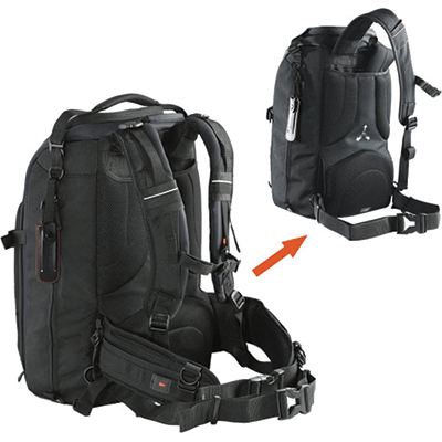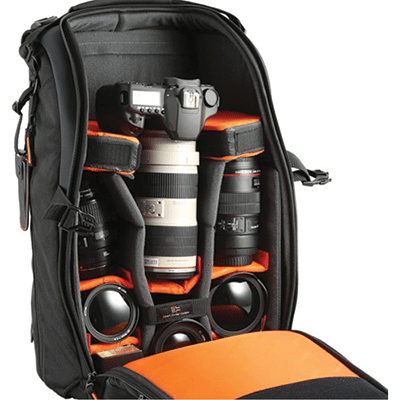 کیف کوله پشتی زیبا دارای ظرفیت یک دوربین DSLR حرفه ای با لنز تله متصل شده (تا به 300mm f/2.8)و 4تا6 لنز اضافی، 2 فلاش و لوازم جانبی (کارت حافظه، کابل، باتری و شارژر)، به علاوه Ultrabook ® تا 11.6 اینچ واید و نگه دارنده سه پایه.