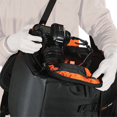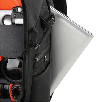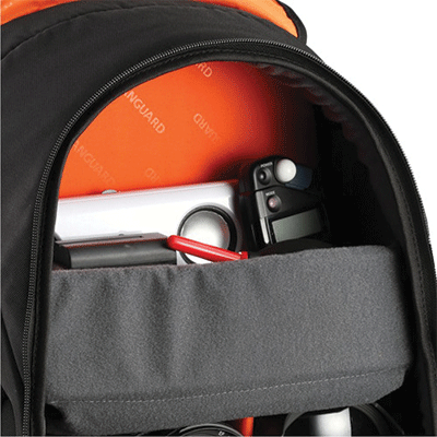 کیف کوله پشتی زیبا و دارای ظرفیت یک دوربین DSLR با لنز متصل شده تله فوتو ،2 تا 3 لنز اضافی ،1 فلاش و لوازم جانبی(کارت حافظه، کابل، باتری، شارژر) ، لپ تاپ تا 14 اینچ.