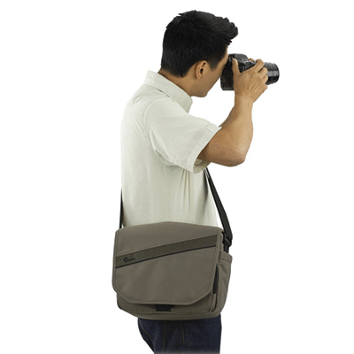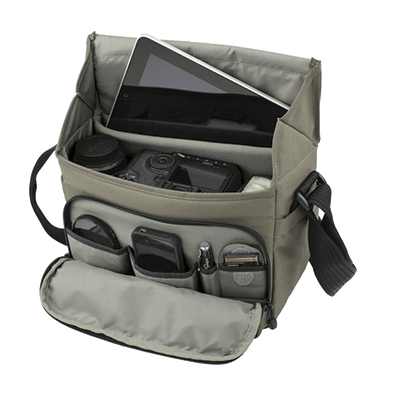 کیف شانه آویز لوپرو زیبا و بادوام دارای ظرفیت یک دوربین DSLR یا CSC W و لنز زوم متصل شده 18-55 ،3 یا 4 لنز اضافی،فلاش و لوازم جانبی(کارت حافظه، کابل، باتری، شارژر)،لپ تاپ تا 13 اینچ.