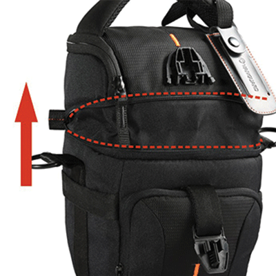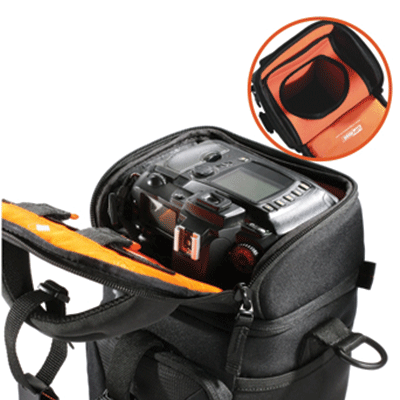 کیف پوزه ای ونگارد زیبا و مقاوم و دارای ظرفیت یک دوربین DSLR با لنز متصل و لوازم جانبی (کارت حافظه، کابل، باتری، شارژر)