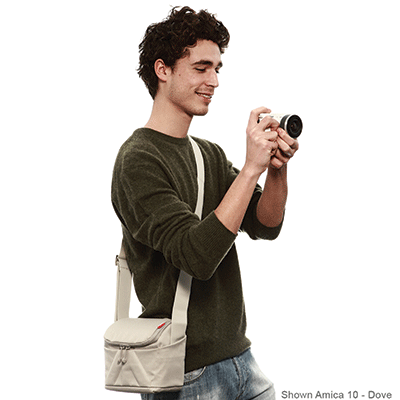 کیف شانه آویز مانفروتو زیبا و بادوام دارای ظرفیت یک عدد دوربین بدون آینه(mirrorless) به همراه لنزاضافی(یا یک دوربینDSLRکوچک)،لوازم جانی(کارت حافظه،شارژر،کابل).