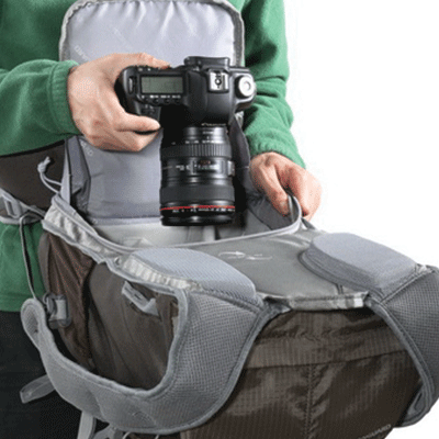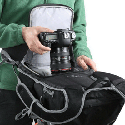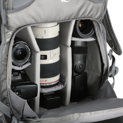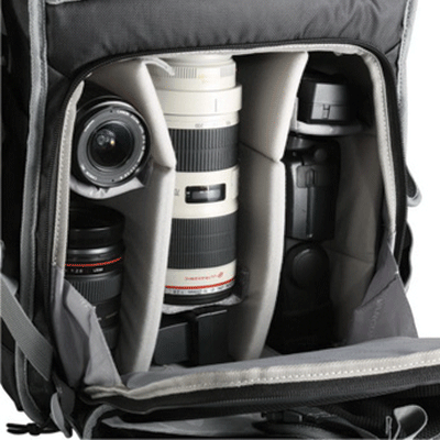 کیف کوله پشتی زیباو ظرفیت برای یک دوربین حرفه ای DSLR با لنز متصل شده200-70میلی مترf/2.8 و 3 تا 4لنز اضافی ،1فلاش اضافی،لوازم جانبی(کارت حافظه، کابل، باتری، شارژر) ،یک سه پایه و یک تک پایه و لپ تاپ تا 13.3 اینچ.