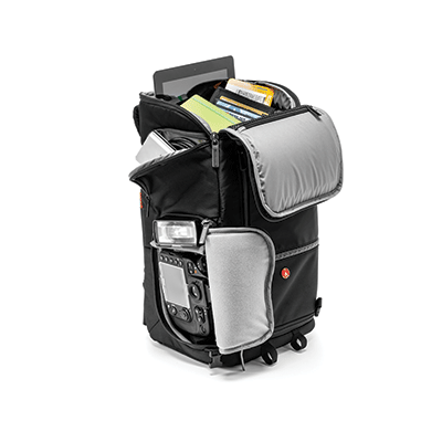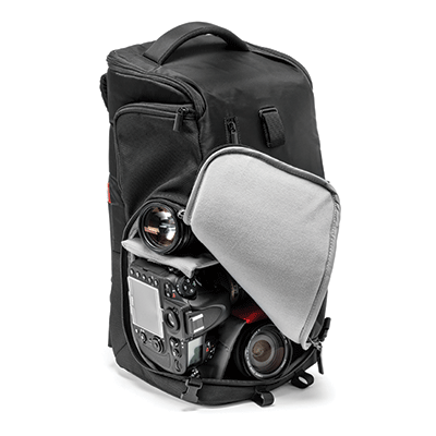 کیف کوله پشتی مانفرتو زیبا و مقاوم و دارای ظرفیت یک عدد دوربین DSLR با گریپ، لنز اضافی5 عدد،1 فلاش،لوازم جانبی(کابل،شارژر،کارت حافظه)،نگدارنده سه پایه،لپ تاپ تا11 اینچ.