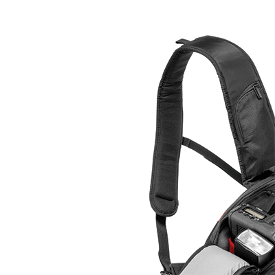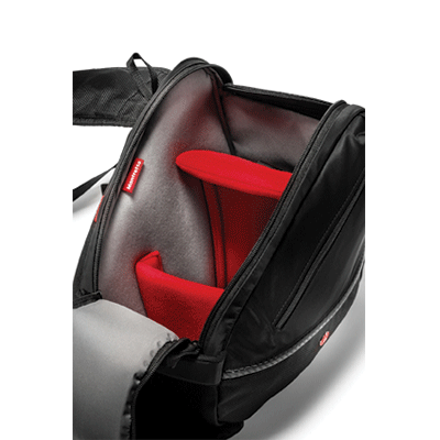 کیف شانه آویز مانفروتو زیبا و بادوام دارای ظرفیت یک دوربین DSLR متصل شده،3 لنز اضافی، 1 فلاش،لوازم جانبی(کابل،باتری،کارت حافظه)