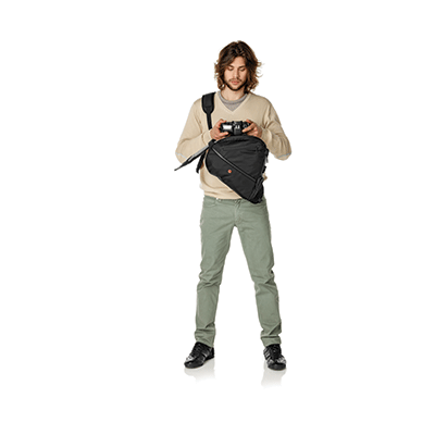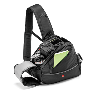 کیف شانه آویز مانفروتو زیبا و بادوام دارای ظرفیت یک دوربین DSLR با لنز متصل شده،2 لنز اضافی، 1 فلاش،لوازم جانبی(کابل،باتری،کارت حافظه)