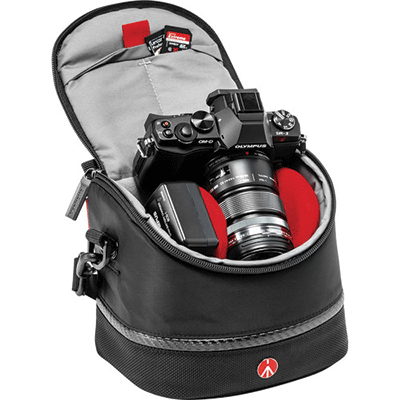 کیف شانه آویز مانفروتو زیبا و بادوام دارای ظرفیت یک دوربین DSLR با لنز متصل شده یادوربین بدون آینه،لوازم جانبی(کابل،باتری،کارت حافظه)