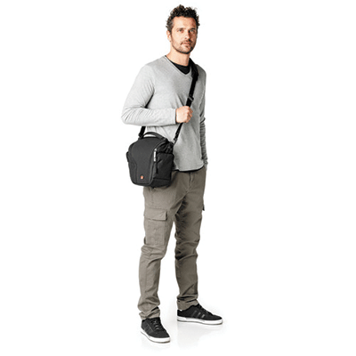 MB MP-H-20BBکیف پوزه ای مانفرتو زیبا و مقاوم و دارای ظرفیت یک عدد دوربین DSLR وبا لنز 70- 24 f2.8/،فلاش،لوازم جانی(کارت حافظه،شارژر،کابل) .