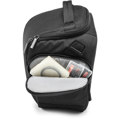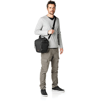 MB MP-H-30BBکیف پوزه ای مانفرتو زیبا و مقاوم و دارای ظرفیت یک عدد دوربین DSLR با گریپ و لنز 70-24، 1عدد لنز اضافی،فلاش،لوازم جانی(کارت حافظه،شارژر،کابل).