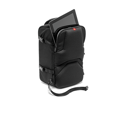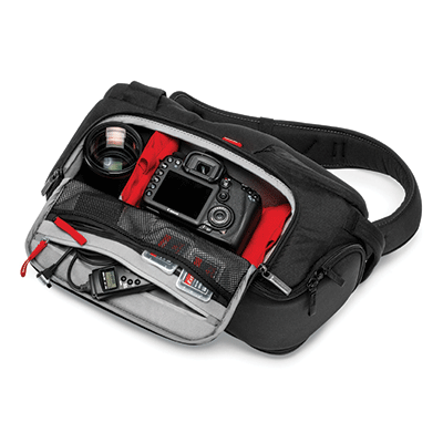 کیف کوله پشتی تک بند مانفروتو زیبا و سبک ومقاوم دارای ظرفیت یک عدد دوربین DSLRحرفه ای با لنز متصل شده ،2 لنز اضافی،لوازم جانی(کارت حافظه،شارژر،کابل)، تبلت،دارای نگه دارنده سه پایه.