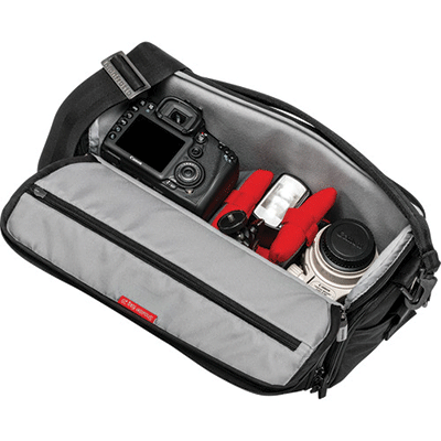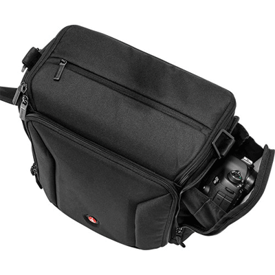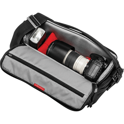 کیف شانه آویز مانفروتو زیبا و بادوام دارای ظرفیت یک عدد دوربین DSLR و لنز 200-70، 3 لنز اضافی،فلاش،لوازم جانی(کارت حافظه،شارژر،کابل)،تبلت.