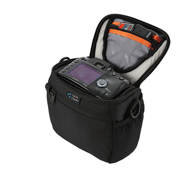 کیف شانه آویز ونگارد زیبا و بادوام و دارای ظرفیت1عدد دوربین DSLR با لنز زوم متوسط متصل شده،1فلاش و لوازم جانبی (کارت حافظه، کابل، باتری و شارژر)