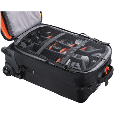 کیف چرخ دار ونگارد دارای ظرفیت دو یا سه DSLR حرفه ای با گریپ و لنز متصل شده (تا به 300mm f/2.8)، لنزاضافی 7-11، 1 فلاش و لوازم جانبی (کارت حافظه، کابل، باتری و شارژر)، به علاوه یک لپ تاپ تا 17 اینچ واید ،سه پایه .