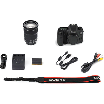 دوربین عکاسی کانن Canon EOS 6D : کیت دوربین فول فریم DSLR به همراه لنز کانن اس تی ام 105-24 با دیافراگم 5.6_3.5 (دوربین کانن EOS 6D)، با سنسور 20.2 مگاپیکسلی ،دارای بدنه ای کوچک و قیمتی مناسب ، فیلم برداری FULL HD ، مجهز به Wifi و GPS داخلی