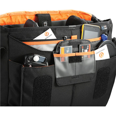 کیف شانه آویز ونگارد زیبا و بادوام دارای ظرفیت 1عدد دوربین DSLR با لنز متصل شده،3 تا 4 لنز اضافی،1 عدد فلاش و لوازم جانبی (کارت حافظه، کابل، باتری و شارژر)،لپ تاپ 10 اینچ
