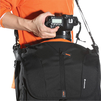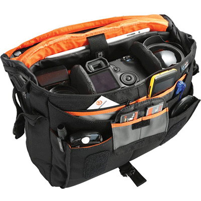 کیف شانه آویز ونگارد زیبا و بادوام دارای ظرفیت 1عدد دوربین DSLR با لنز متصل شدهup to 70-200 mm f/2.8، تا 4 تا3لنز اضافی،1 عدد فلاش و لوازم جانبی (کارت حافظه، کابل، باتری و شارژر)،لپ تاپ 13 اینچ
