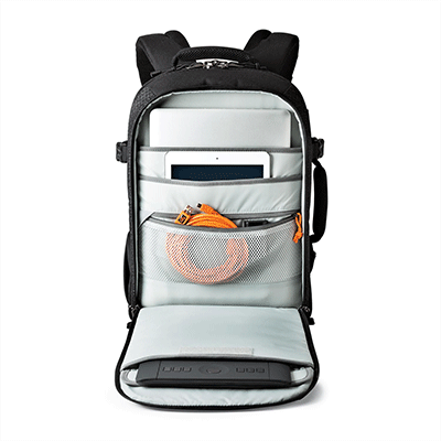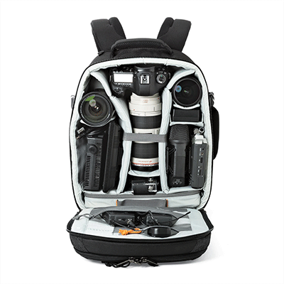 کوله پشتی سبک و زیبا دارای فضا برای دو عدد دوربین حرفه ای DSLR با لنز 5تا 6 عدد لنز یا فلاش اضافی،لوازم جانبی(کارت حافظه، کابل، باتری، شارژر) ،یک سه پایه کوچک و لپ تاپ تا 13 اینچ، بند کمر،دارای بند برای حمل بر روی چمدان.