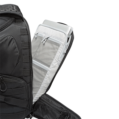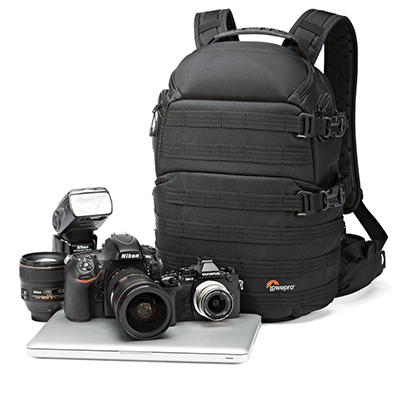 کوله پشتی سبک و زیبا دارای فضا برای دو عدد دوربین حرفه ای DSLR یا بدون آینه با لنز 24-70 f/2.8 و 6 عدد لنز اضافی و 1 عدد فلاش ،لوازم جانبی(کارت حافظه، کابل، باتری، شارژر) ، و لپ تاپ تا سایز 13 اینچ، بند کمر،کاور باران