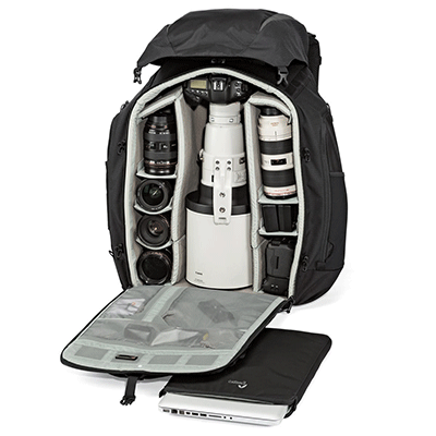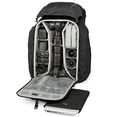 کیف کوله پشتی لوپرو مدل Pro Trekker 650 AWدارای ظرفیت 1 عدد دوربین DSLR حرفه ای با لنز 4عدد لنز اضافی ،1عدد فلاش ،1 عد دوربین Gopro،لپ تاپ تا 15 اینچ.