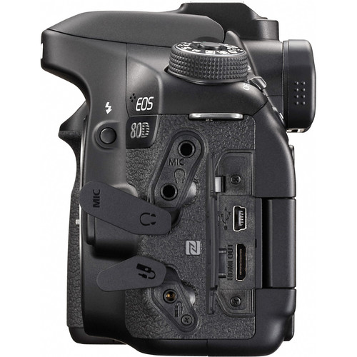 دوربین عکاسی کانن EOS 80D دارای خروجی USB و HDMI و ورودی میکروفن است و ارتباط بی سیم را دارا می باشد.