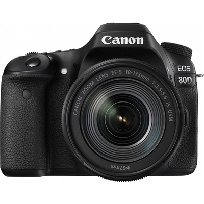 دوربین کانن 80D EF-S: دوربین کانن EOS 80D با سنسور 24.2 مگاپیکسل، این دوربین کانن 80D EF-S دارای دو پردازشگر DIGIC 6+، با صفحه نمایش 3 اینچی لمسی، کیفیت فیلم برداری FUUL HD با سرعت 60 فریم بر ثانیه، 45 نقطه فوکوس، ایزو ارتقاء یافته 25600، عکاسی پی در پی 7 فریم بر ثانیه، دارای wifi داخلی و NFC.