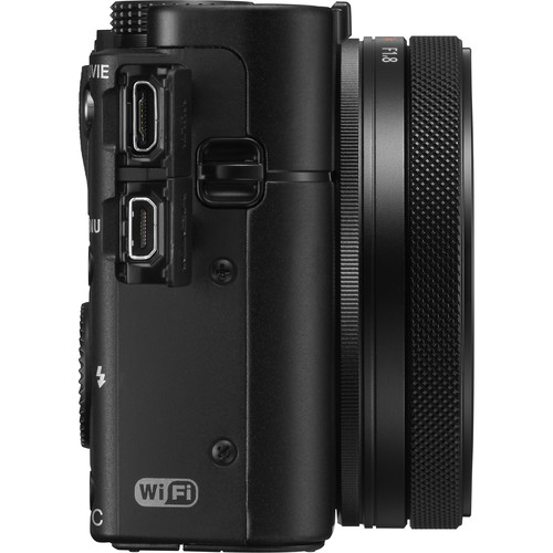 دوربین عکاسی کامپکت پیشرفته سونی مدل DSC-RX100 V با حسگر 20.1 پیکسلی با سنسور CMOS ، با قابلیت فیلم برداری 4K ، دارای لنز زایس با فاصله 70-24 میلی متری با دیافراگم باز 2.8-1.8 ، دارای سیستم فوکوس هیبریدی با 315 نقطه فوکوس اتوماتیک و دارای ایزو 12800 و عکاسی پی در پی 24 فریم بر ثانیه