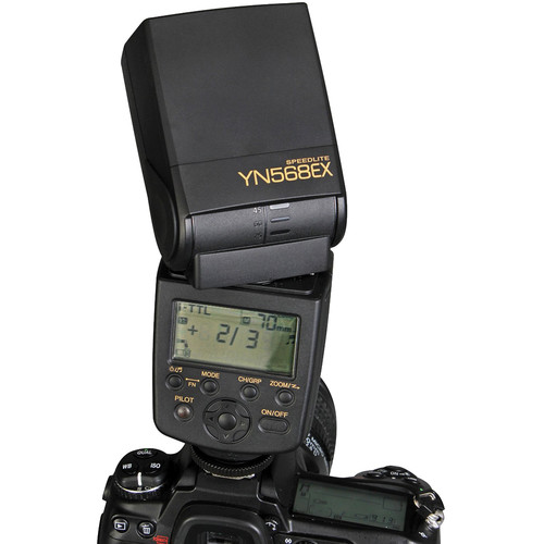 فلاش اکسترنال مدل Yongnuo YN-568EX سازگار با سیستم I-TTL نیکون با عدد راهنما 58 متر و دامنه زوم 105-24 ، با امکان کنترل بی سیم فلاش به صورت Master/Slave TTL ، مدت زمان بازیابی فلاش 3 ثانیه ،با کفشک فلزی ،دارای پنل LCD جهت نمایش و تغییر مشخصات ،قابل استفاده با 4 عدد باتری سایز AA , با قابلیت سرعت سینک بالا و سینک با پرده دوم شاتر و دارای حالت مولتی