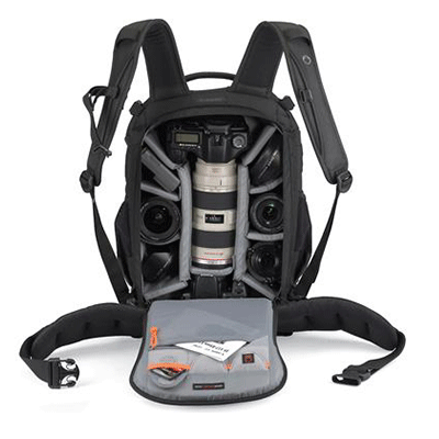 کیف کوله پشتی لوپرو مدل Lowepro Flipside 400AWدارای ظرفیت 2 عدد دوربین DSLR و 4 تا 6 عددلنز اضافی،1 عدد فلاش ، دارای دسترسی از پشت به منظور امنیت بیشتر ، با قابلیت نصب سه پایه و دارای کاور باران و بند دور کمر به منظور حمل آسان تر