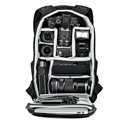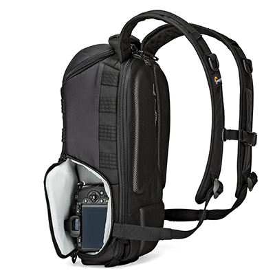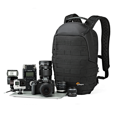 کیف کوله پشتی لوپرو مدل Lowepro ProTactic BP 250 AW مناسب برای یک دوربین بدون آینه (از قبیل سونی a7 و فوجی فیلم XT2) به همراه لنزش ، 3 یا 4 لنز اضافی، به همراه فلاش ، با قابلیت دسترسی از قسمت بالایی ، قسمت کناری (دسترسی سریع)، قسمت پشت ، دارای کاور باران و محفظه ای برای لب تاپ تا سایز 11 اینچ