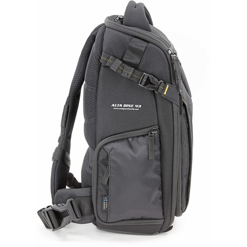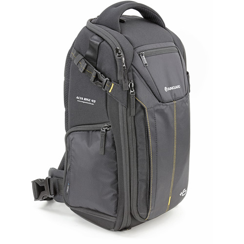 کیف کوله پشتی تک بند ونگارد مدل ALTA RISE 43 مناسب برای یک دوربین DSLR به همراه لنزش ،4 یا 5 لنز اضافی و فلاش ، تبلت سایز کوچک و دارای فضایی برای لوازم شخصی، با قابلیت افزایش سایز از طریق زیپ های افزایش دهنده ،دارای کاور باران ، دارای دسترسی از قسمت جلو و قسمت کناری کیف