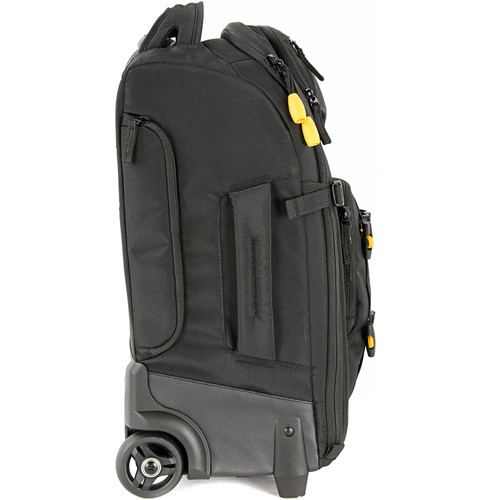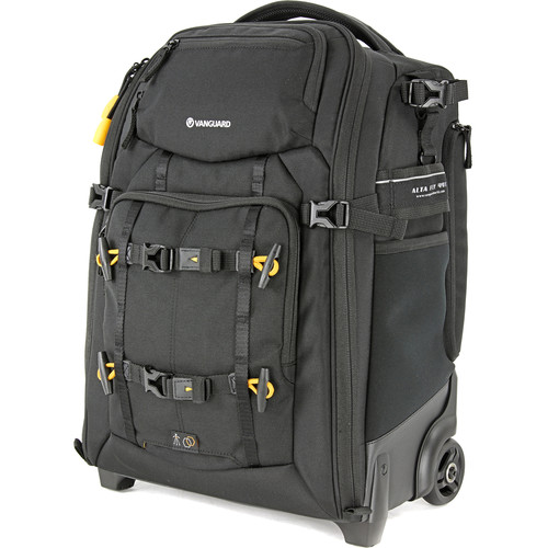 کیف چرخ دار ونگارد مدل Alta Fly 49T مناسب برای یک تا دو عدد دوربین حرفه ای DSLR به همراه پنج تا هفت عدد لنز و یک فلاش و لوازم جانبی و دارای فضا برای سه پایه و دارای فضایی برای لپ تاپ تا 14اینچ، این مدل دارای دسترسی آسان به دوربین زیپ جلو کیف می باشد.